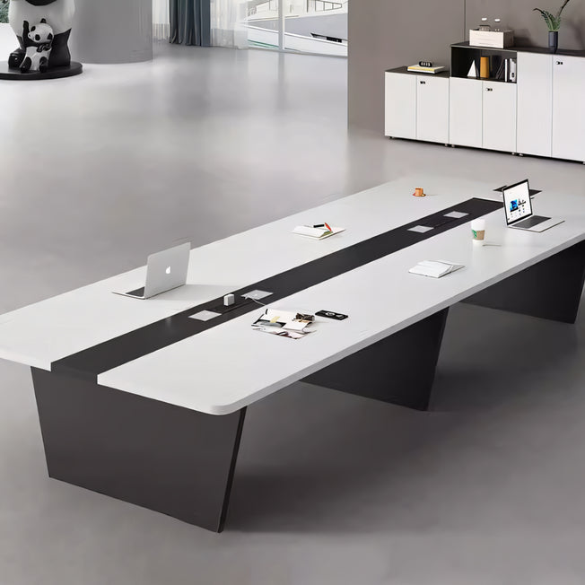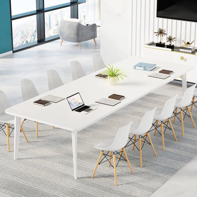 Transform your meeting space with this contemporary rectangular conference table, designed to combine style, durability, and functionality. Made from high-quality E1-grade eco-friendly board, it offers exceptional wear, stain, and heat...