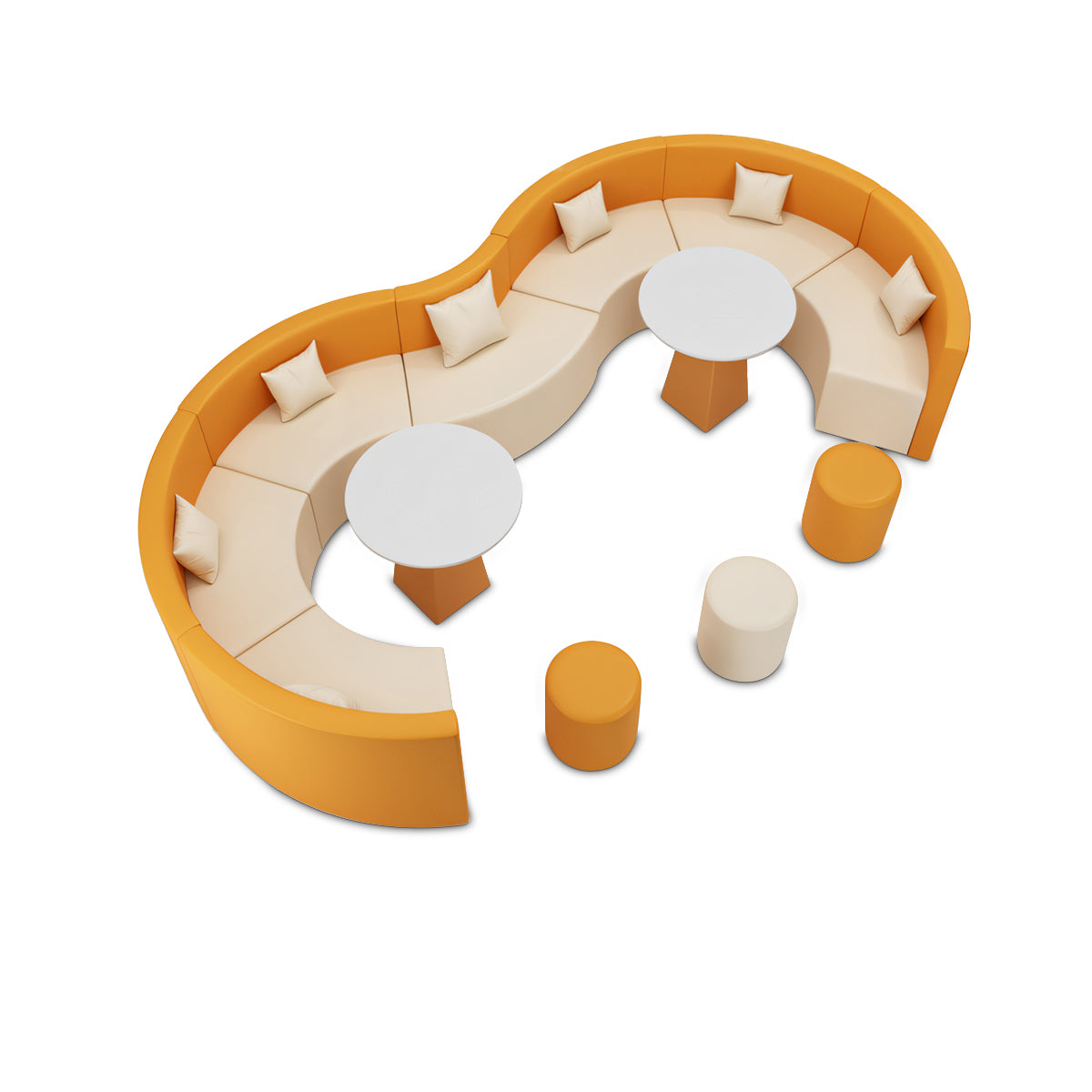 Single Sofa, Single Seat Without Backrest, Round Coffee Table, Round Stool |