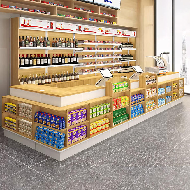 Wooden Corner Convenience Store Cash Register Combo Counter JDT-2045
