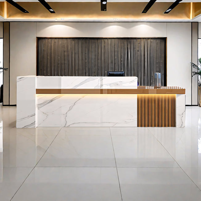 Marble-Effect Lacquered Corner Checkout Reception Desk JDT-1069