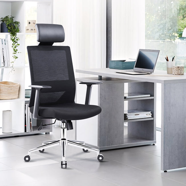 Description: Introducing our comfortable high-back mesh chair with extended headrest and lumbar support the chair for enhanced comfort and posture. With its higher headrest and ergonomic design, this chair provides...