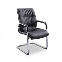 This chair features black leather and a polished chrome bow-frame base. Its sleek, minimalist design makes it ideal for offices, meeting rooms and other professional spaces.