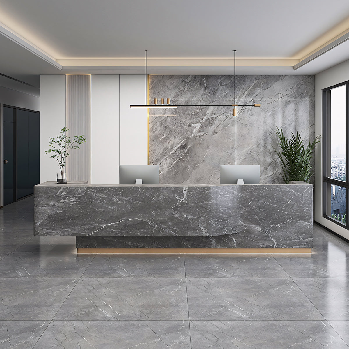 The front of the reception desk is designed to imitate the marble texture. The texture is clear and realistic. The desk is scratch-resistant and impact-resistant, and is not prone to cracks or breakage.