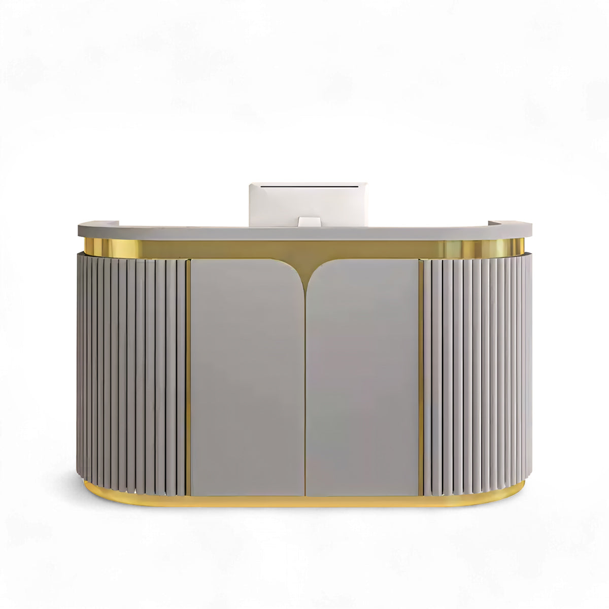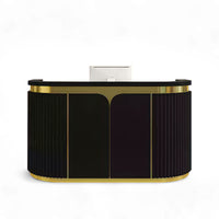 This high-end and exquisite reception desk gives you a different experience. With golden decorative strips of stainless steel and the hidden LED light strip make the entire reception desk grand and beautiful.