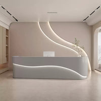 This reception desk features a minimalist and stylish appearance, with an overall white tone. Its smooth curved design is elegant and unique, while the internal layout is reasonable and offers ample storage space.