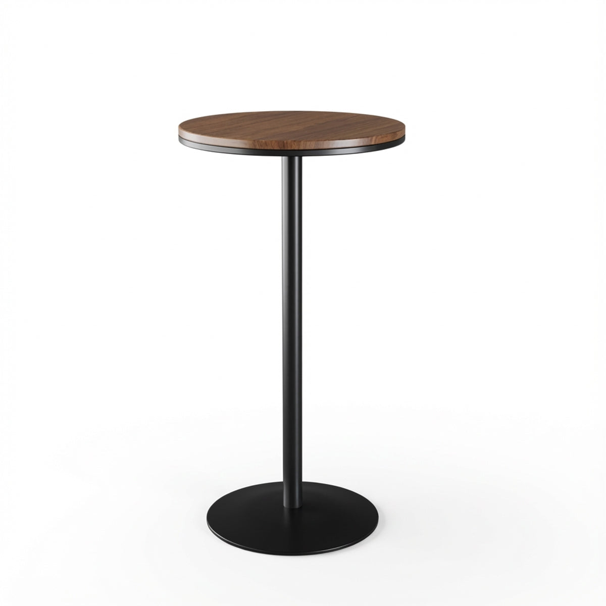 This bar table and stool set features clean, uncluttered lines with no excessive decor. It pairs a black metal frame with wood-like tabletops and stool seats, making it perfect for frequent daily use.
